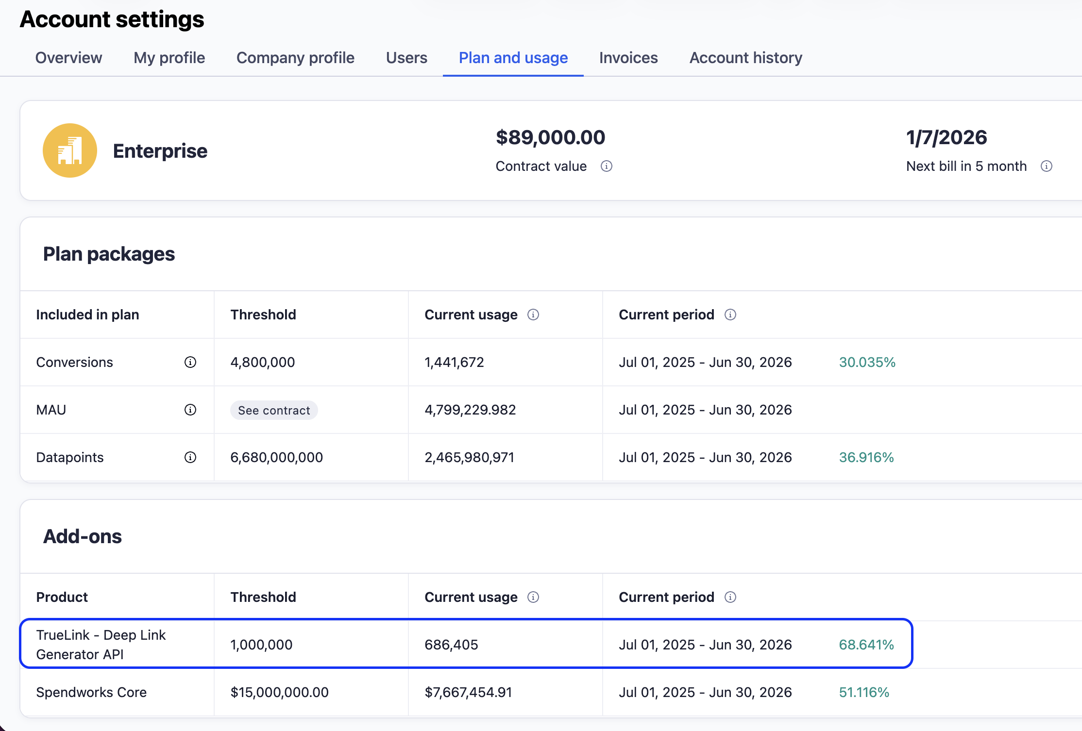 - Select Plans & Usage