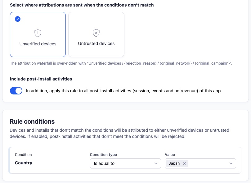 Conversion Rules es una función avanzada de nuestro pilar Protect. Te permite validar las instalaciones y los engagements de los usuarios al aplicar reglas personalizadas definidas por ti.