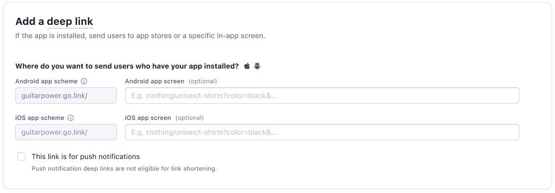 - Если ссылка будет использоваться для push-уведомлений, выберите Это ссылка для push-уведомлений .